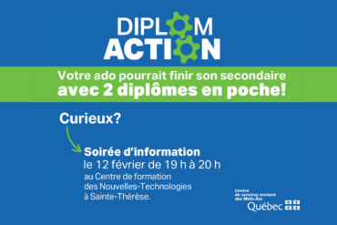Invitation aux parents des élèves 2e et 3e secondaire 👀 Votre ado aura 15 ans d’ici le 30 septembre? Il ou elle aurait besoin de motivation pour terminer son parcours d’études secondaires et obtenir son diplôme ? Vous êtes invités à une soirée d’information sur le parcours DiplomAction, qui se tiendra le 12 février, de 19 h à […]